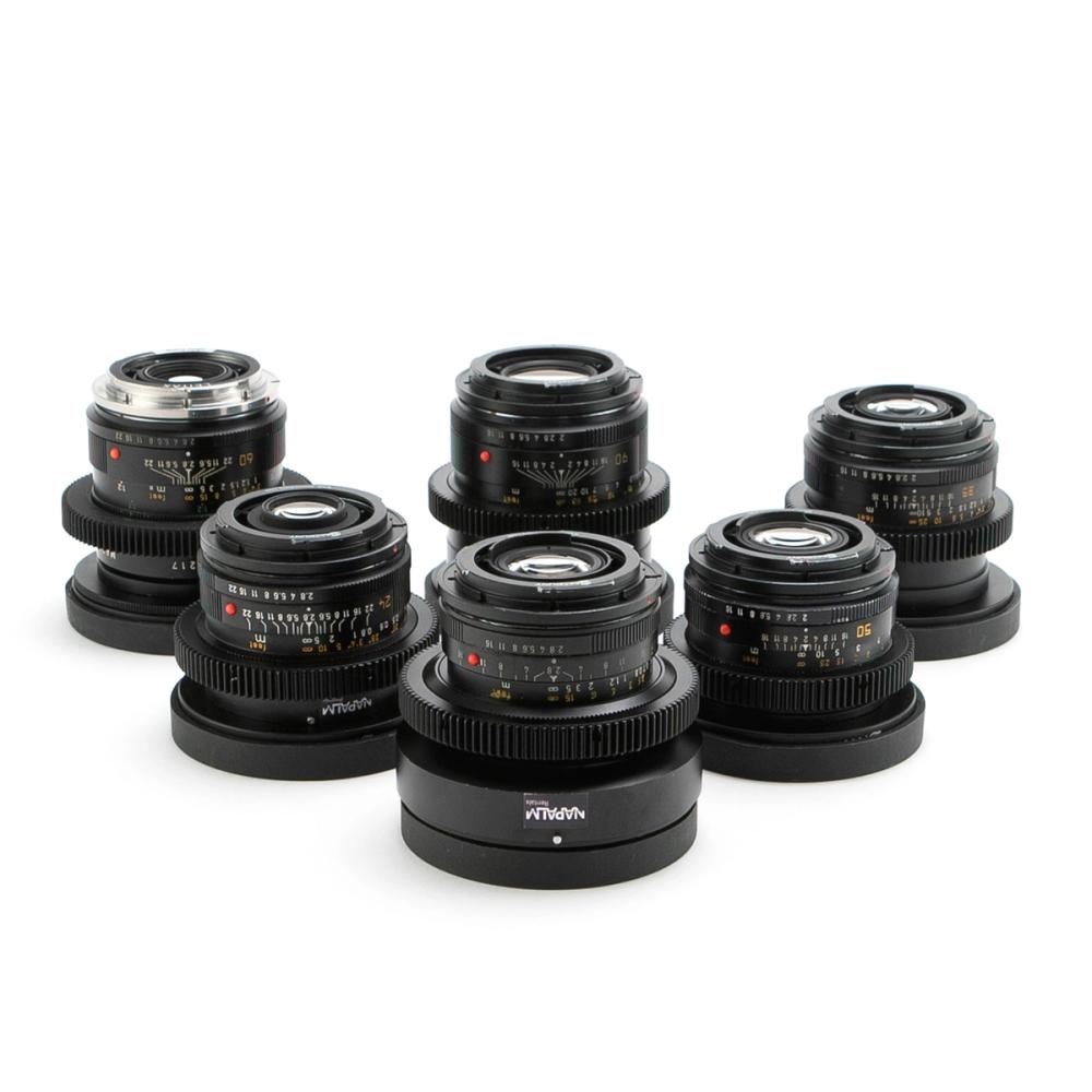 19mm: ƒ2.8 / 0,30m / 0,3kg 28mm: ƒ2.8 / 0,30m / 0,3kg 35mm: ƒ2.0 / 0,30m / 0,4kg 50mm: ƒ2.0 / 0,50m / 0,3kg 60mm: ƒ2.0 / 0,30m / 0,5kg 90mm: ƒ2.0 / 0,68m / 0,5kg