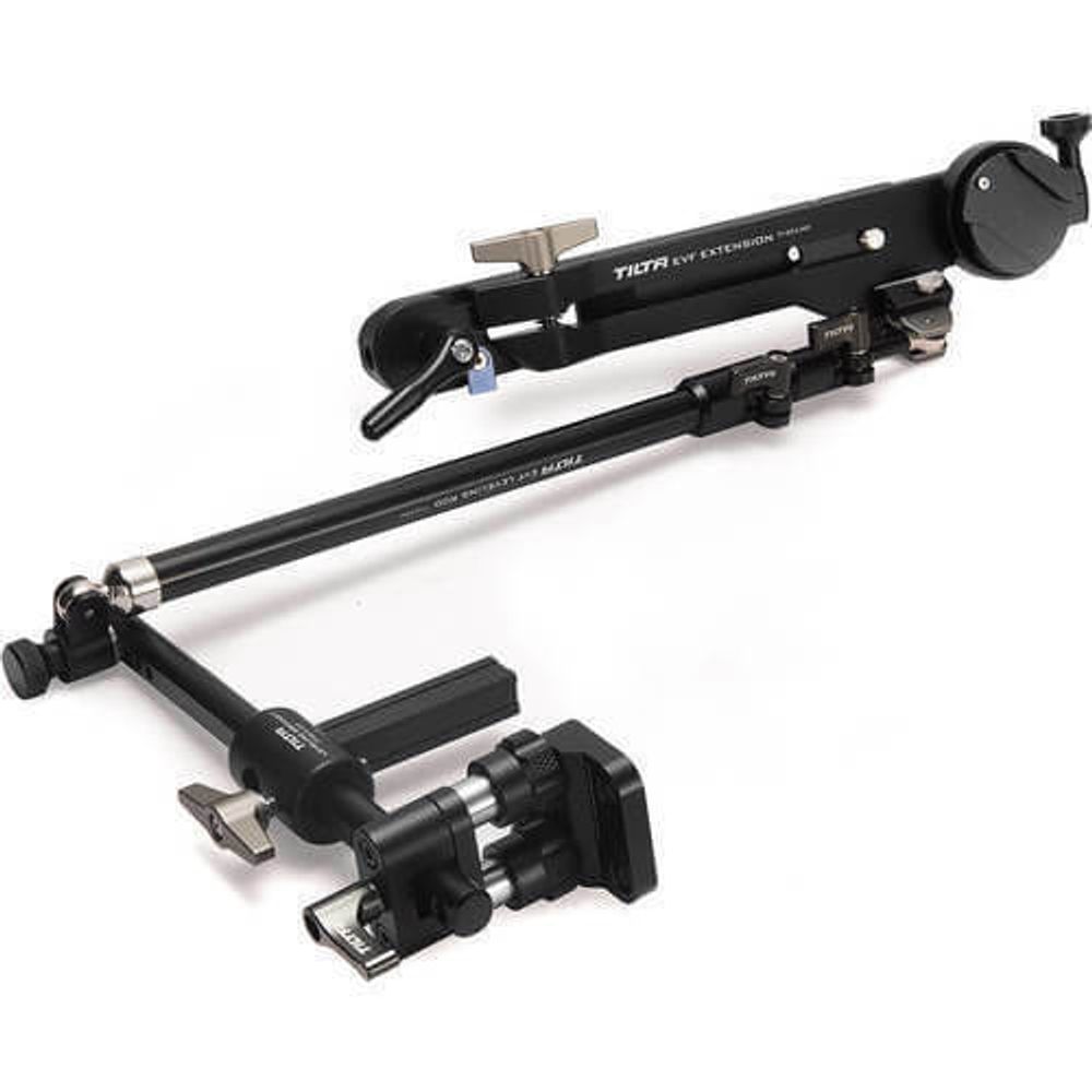 This Eyepiece Leveler Assembly Kit from Tilta is a helpful accessory that adds another layer of flexibility to your rig. The kit features three pieces: a leveling bracket, a telescoping leveling rod, and an eyepiece extension. The bracket attaches to select tripod heads and forms the base of the system. The telescoping rod can telescope from 12.5" to 28.9", allowing you to find the right height for your EVF; it can rotate on each end for fine adjustments. And finally, the eyepiece extension attaches to the end of the rod then to your camera (and it works with ARRI or Sony VENICE models), providing support for an EVF or monitor.