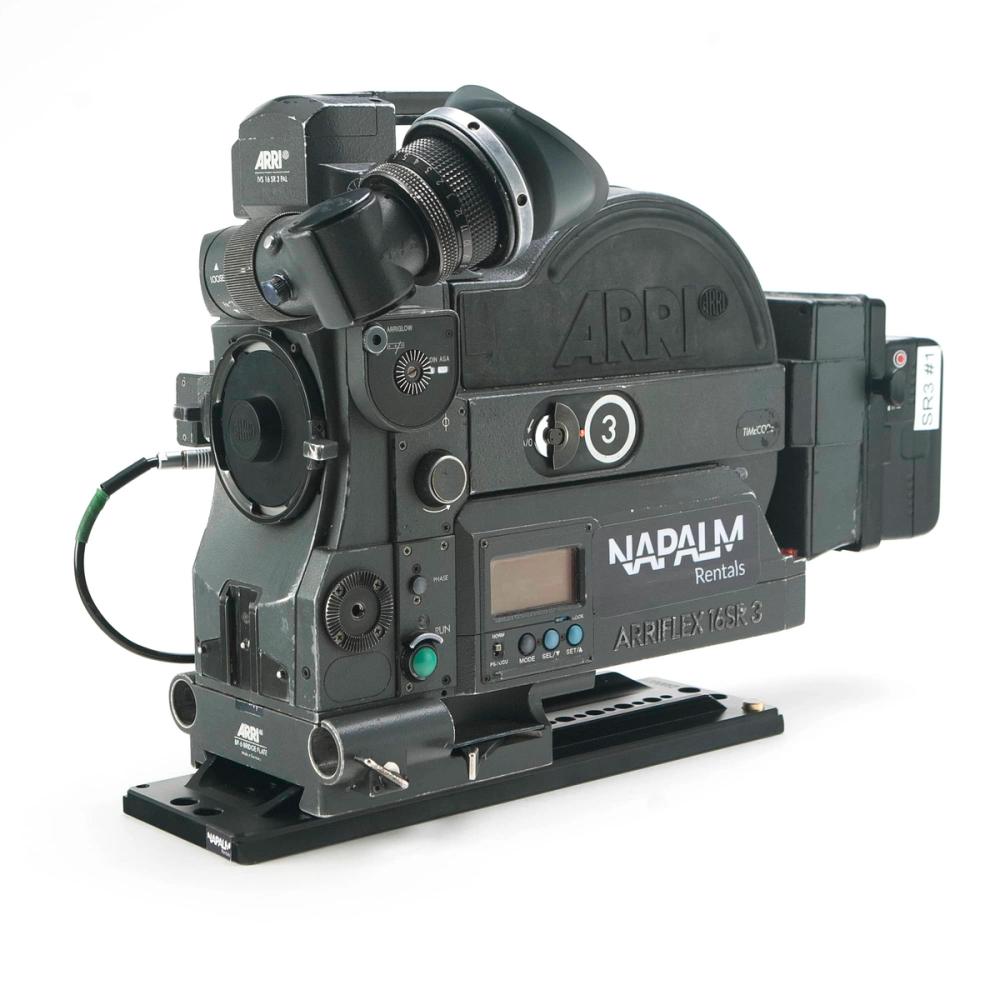 The ARRIFLEX Sr3 is designed and prepared to meet all modern production requirements. This camera, the ARRIFLEX Sr3 camera can be easily distinguished by its small portable profile, its multi-directional viewfinder has a properly vertical image in all positions, to the right and left of the camera, a crystal-controlled motor and a coaxial charger of 400 feet change fast.